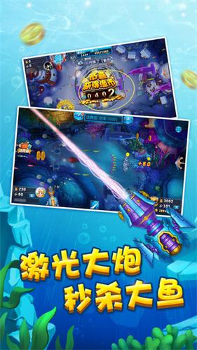 2、多樣的漁具選擇:游戲中有各類漁具,從普通網(wǎng)到激光炮、電擊槍等,玩家可以通過完成任務或購買來解鎖更多高級漁具,提高捕魚效率。