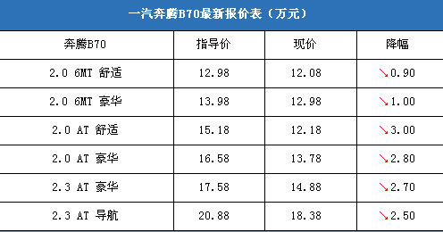 二、一汽奔騰價格表:性價比與品質(zhì)的完美融合