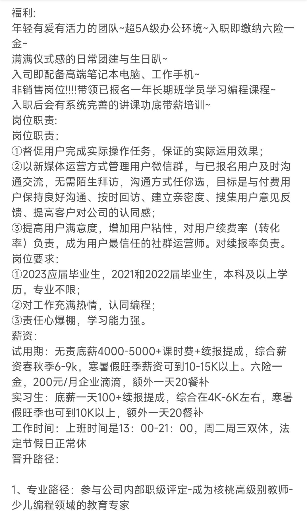 房山海博思創(chuàng)秉承“以人為本”的理念,尊重并關心每一位員工,我們倡導開放、協(xié)作、創(chuàng)新的工作氛圍,鼓勵員工發(fā)揮潛能,實現(xiàn)個人價值,在福利待遇方面,我們提供具有競爭力的薪資待遇、完善的社保福利、豐富的培訓機會以及良好的晉升空間,我們還為員工提供舒適的工作環(huán)境、豐富的團隊活動以及年度旅游等眾多福利,讓員工在工作中感受到家的溫暖。